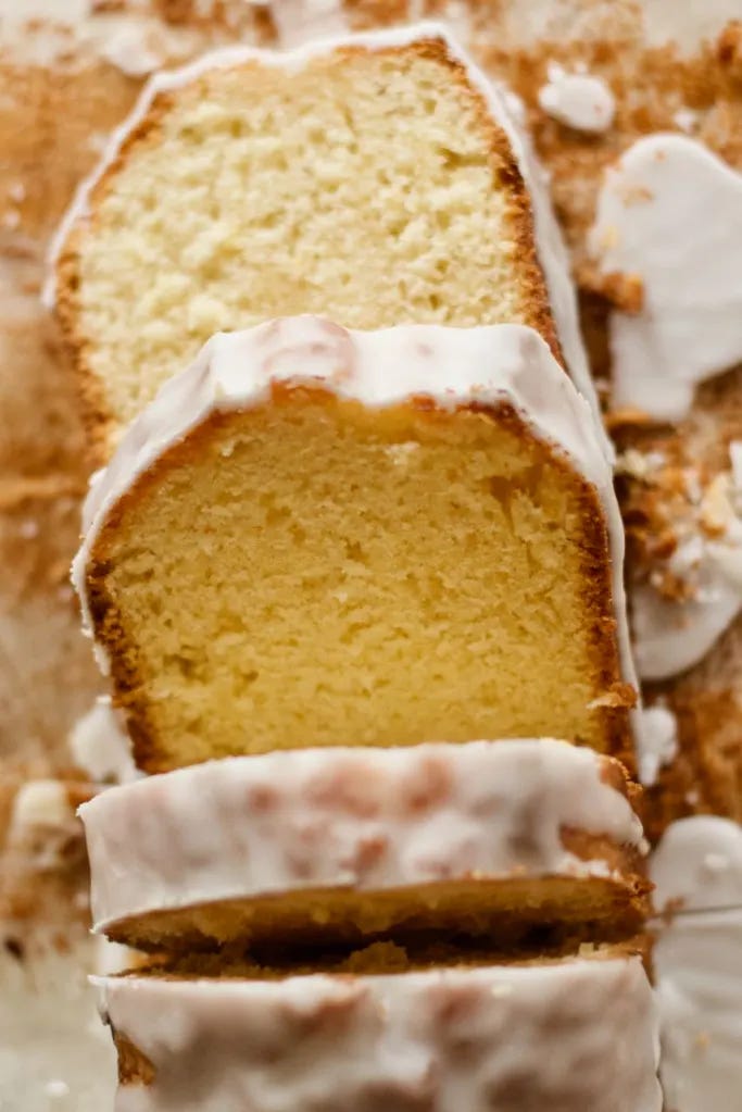 Once the cake is out of the oven, pierce it all over with a wooden skewer and brush on the drizzle until there is nothing left of the syrup. Wait for 5-10 minutes before carefully removing the cake from the loaf pan and placing it on a rack to come to room temperature.
